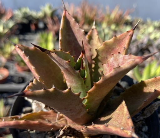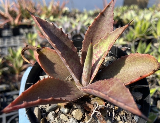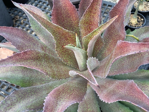 Catch a Wave Mangave has very thick, silvery blue-green leaves are generously covered with restrained dark spotting.